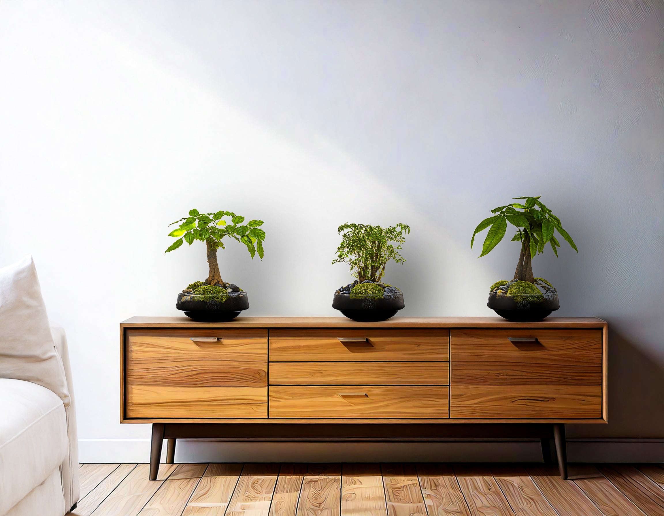 The Bottle Collection is all about the power of simplicity, nature, and sustainable design. Our handmade terrariums bring a touch of greenery into your interior – stylishly packaged in recycled glass bottles. Each piece is unique, carefully curated with living plants, moss, and natural materials that add ambiance and character to any space.